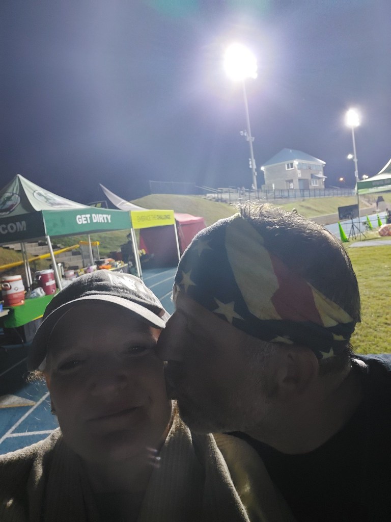 The drive to Greenville lasted four and a half hours, which included a stop at Cracker Barrel (it was the only thing that we could find without a wait. I had fish and a baked potato with the delicious baked apples). We arrived at our airbnb at 9:30, showered and went right to bed. 5:00 wake up call, another shower, bagel with honey, jelly and bananas and a cup of coffee and we were out the door by 6:15. Arrived at the track at 6:30, unloaded the tent, table, chair, cooler and laundry basket with my shoes, extra socks, running attire and medical kit. We were set up by 7:00 and ready to go. Now I had to relax and wait an hour for the start. With all my time that I spent on a track, all I wanted to do was warm up and do some striders to get ready, but I knew that was counter productive to running my first few miles at 9:30-9:45 pace.