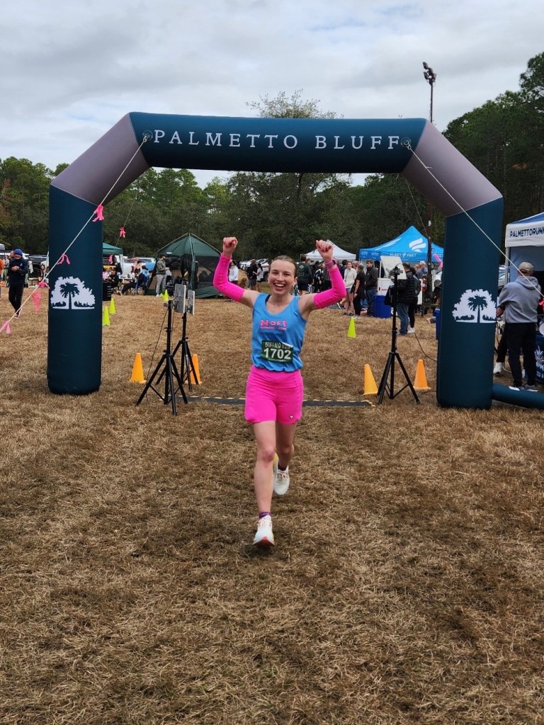 My excitement for the day woke me up before my alarm and race day commenced! I enjoyed my coffee and breakfast, geared up, and we headed off to Palmetto Bluff. When we arrived I felt like I should be nervous but I wasn’t. I kept thinking to myself “Literally all you have to do is run — that’s what you came here to do”. Moments before the race, I took a walk with my dad where he gave me some final words of advice — “Don’t go out too hard. Just run your race. I’m already so proud of you.” And then I finally headed to the starting line. Since it was still dark, I was using a headlamp for the first time and I was so focused on getting that situated that when the race started, I almost forgot to start my watch like a total amateur, but luckily I was reminded by everyone around me so I clicked start and headed off to finally become and ultramarathoner.